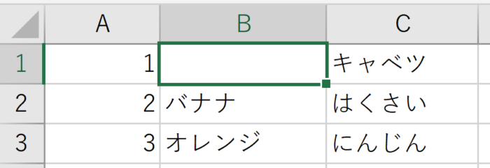 (例)「B1」に入力していた「いちご」を誤って消してしまった場合に「Ctrl」+「Z」を押すと