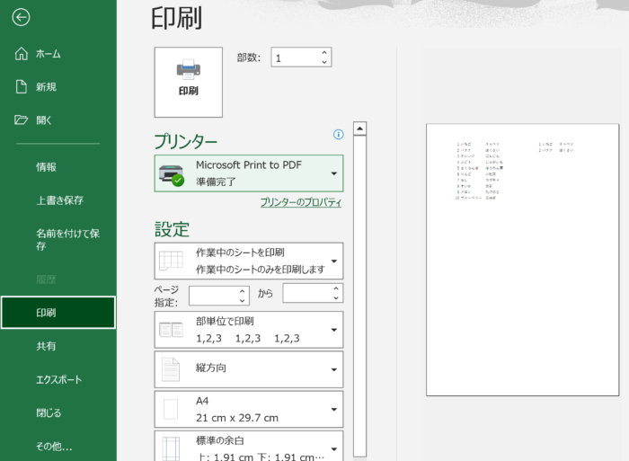印刷画面を開きます。