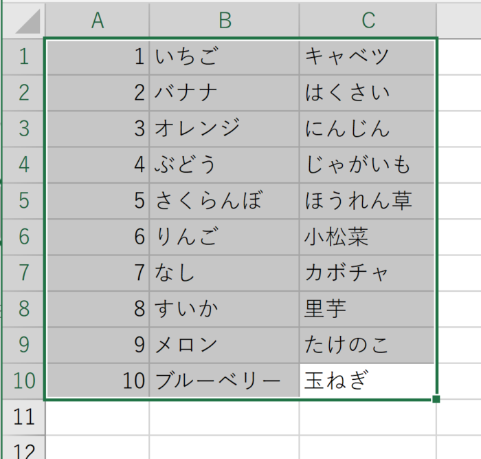 Shift + Ctrl は離さずに「↑」をクリックすると、データが入っている部分全体が選択できます。