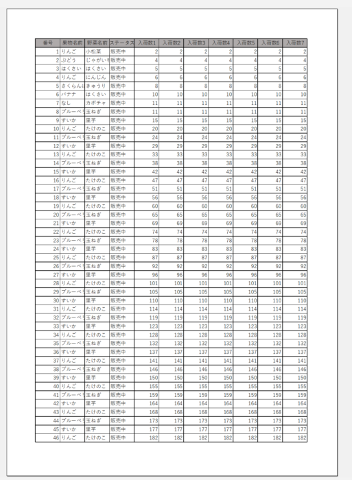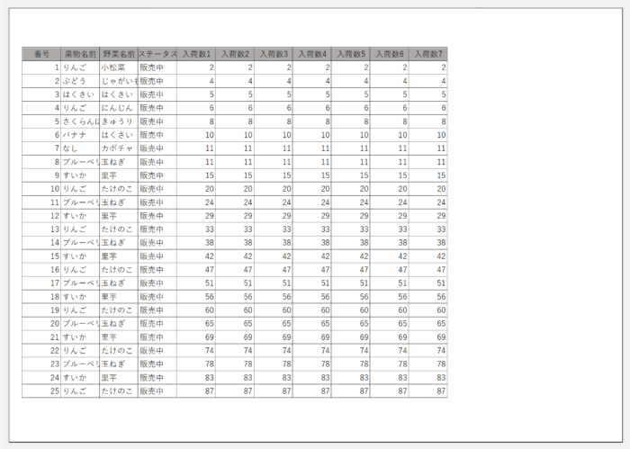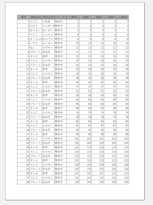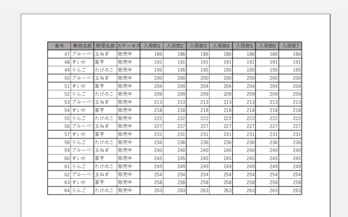 列が多い表は、縦向きより横向きの方が見やすく印刷できます。