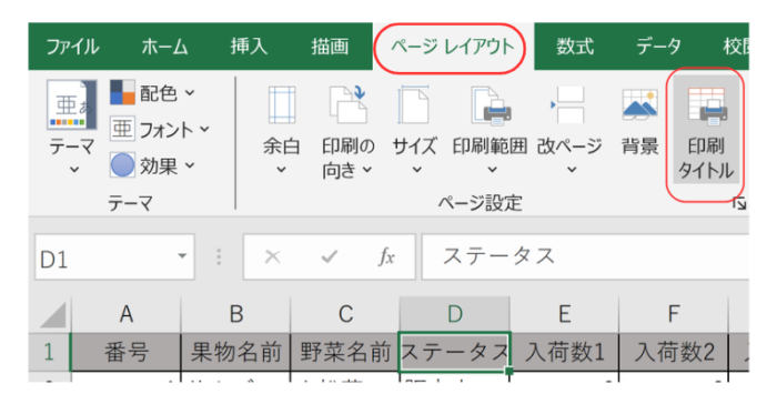 3.「ページレイアウト」から「印刷タイトル」をクリック