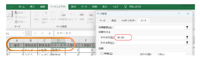 4.「タイトル行」をクリックして、1行目をクリックして「OK」します。