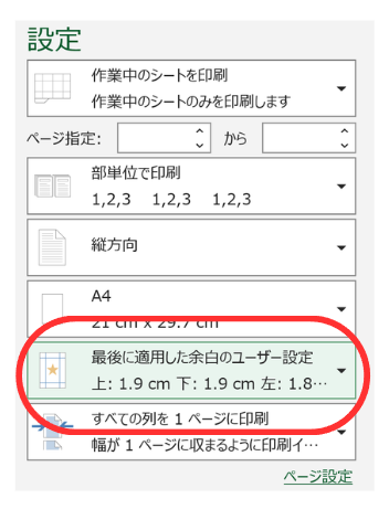 「すべての列を1ページに印刷」を実行すると、横方向は1枚におさまるようになります。